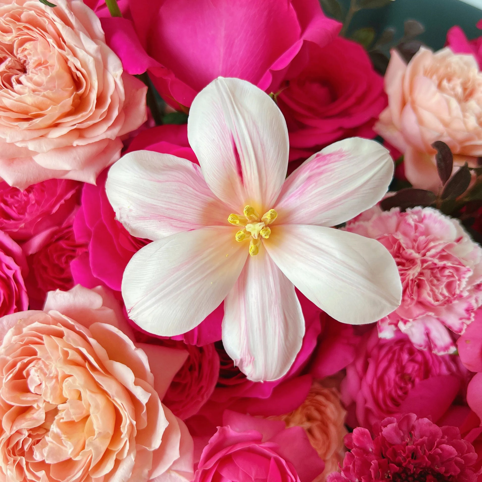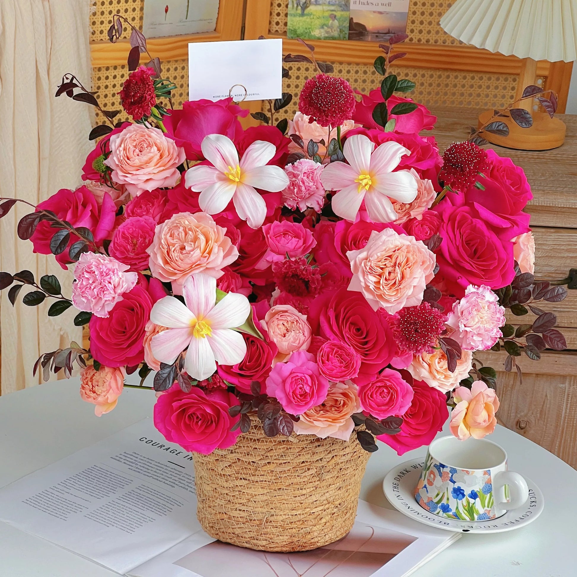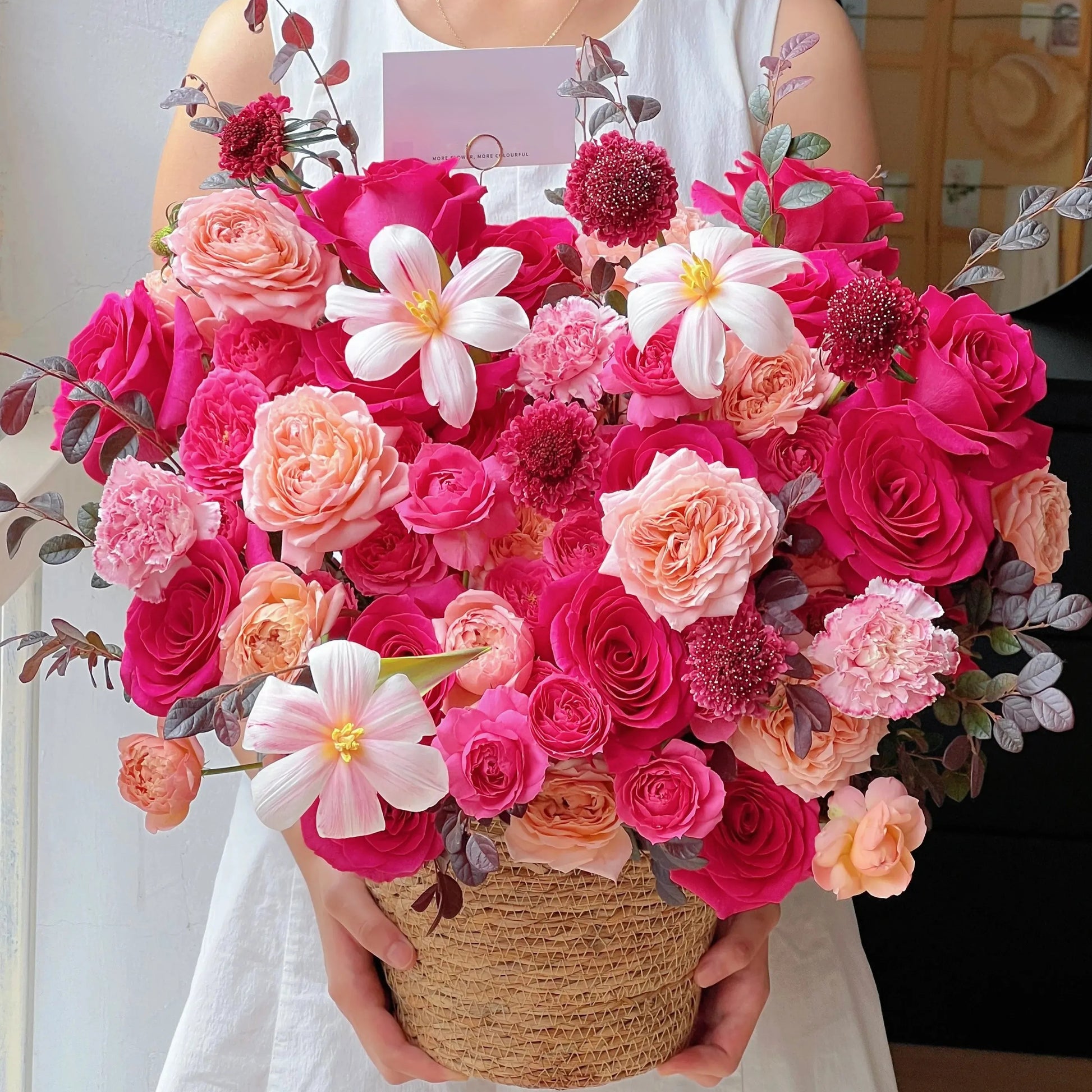 【玫粉花簇】弗洛伊德鬱金香混搭鮮花桶