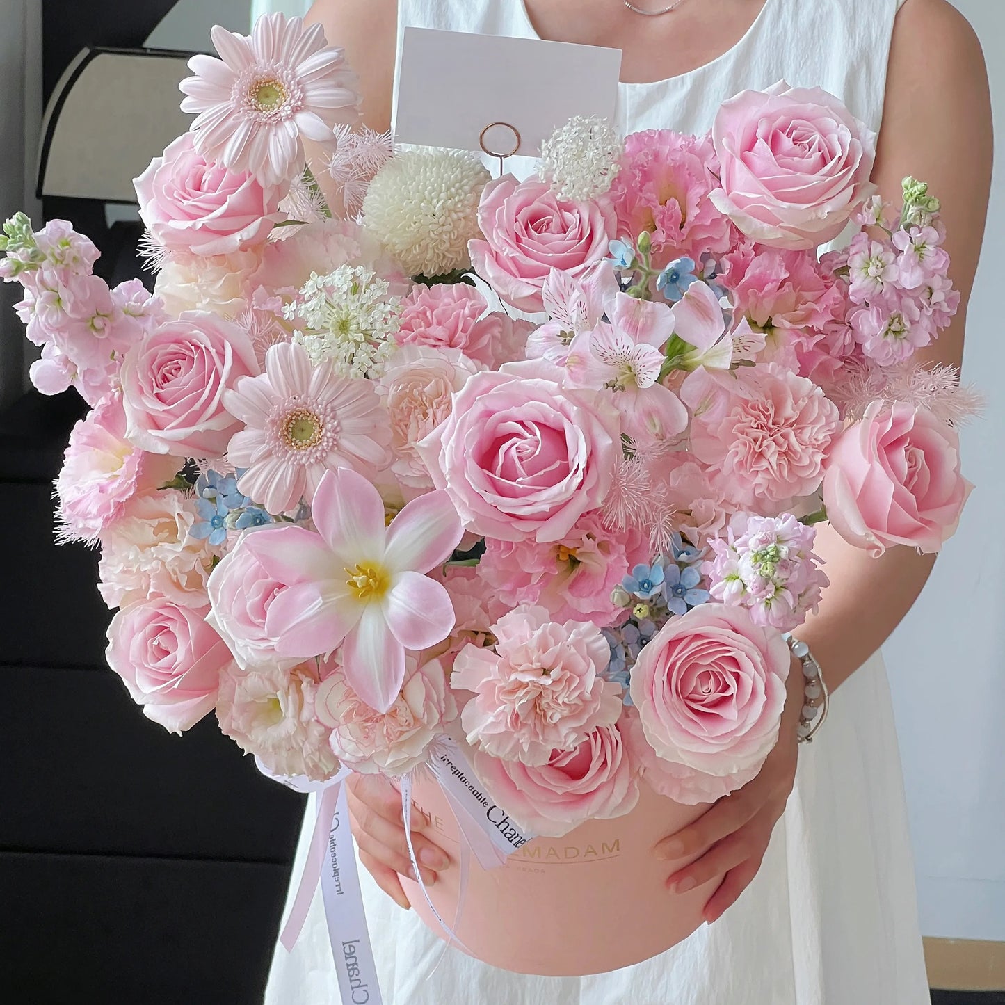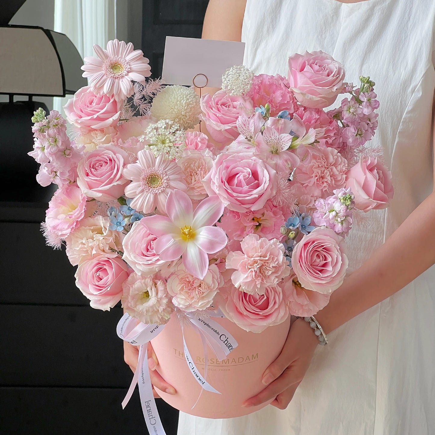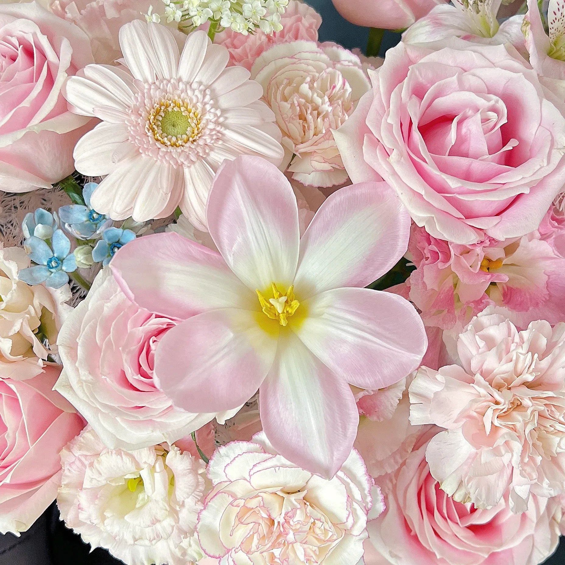 【粉汐織夢】粉雪山康乃馨鬱金香混搭鮮花桶