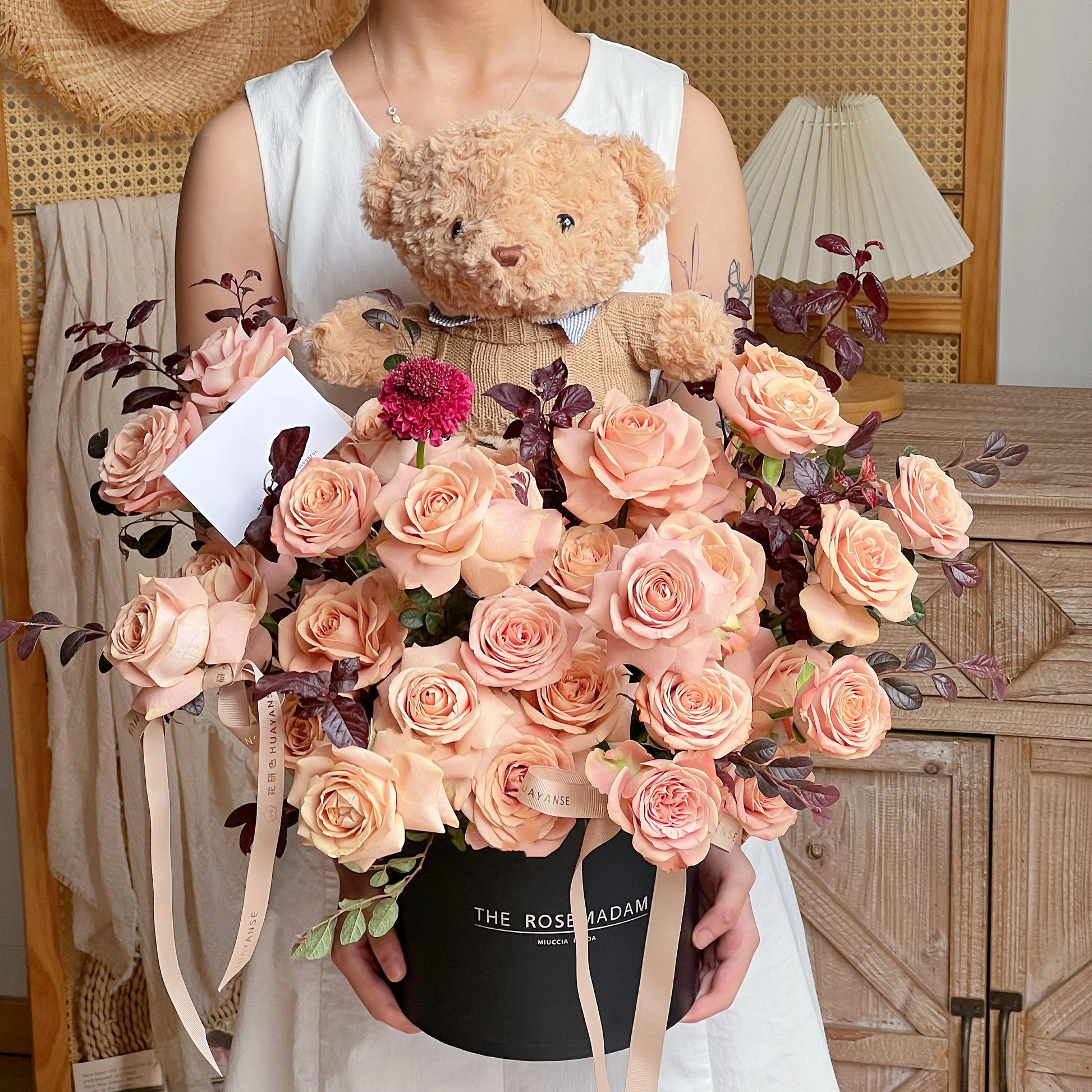 【暖熊花遇】熊仔卡布奇諾混搭鮮花桶