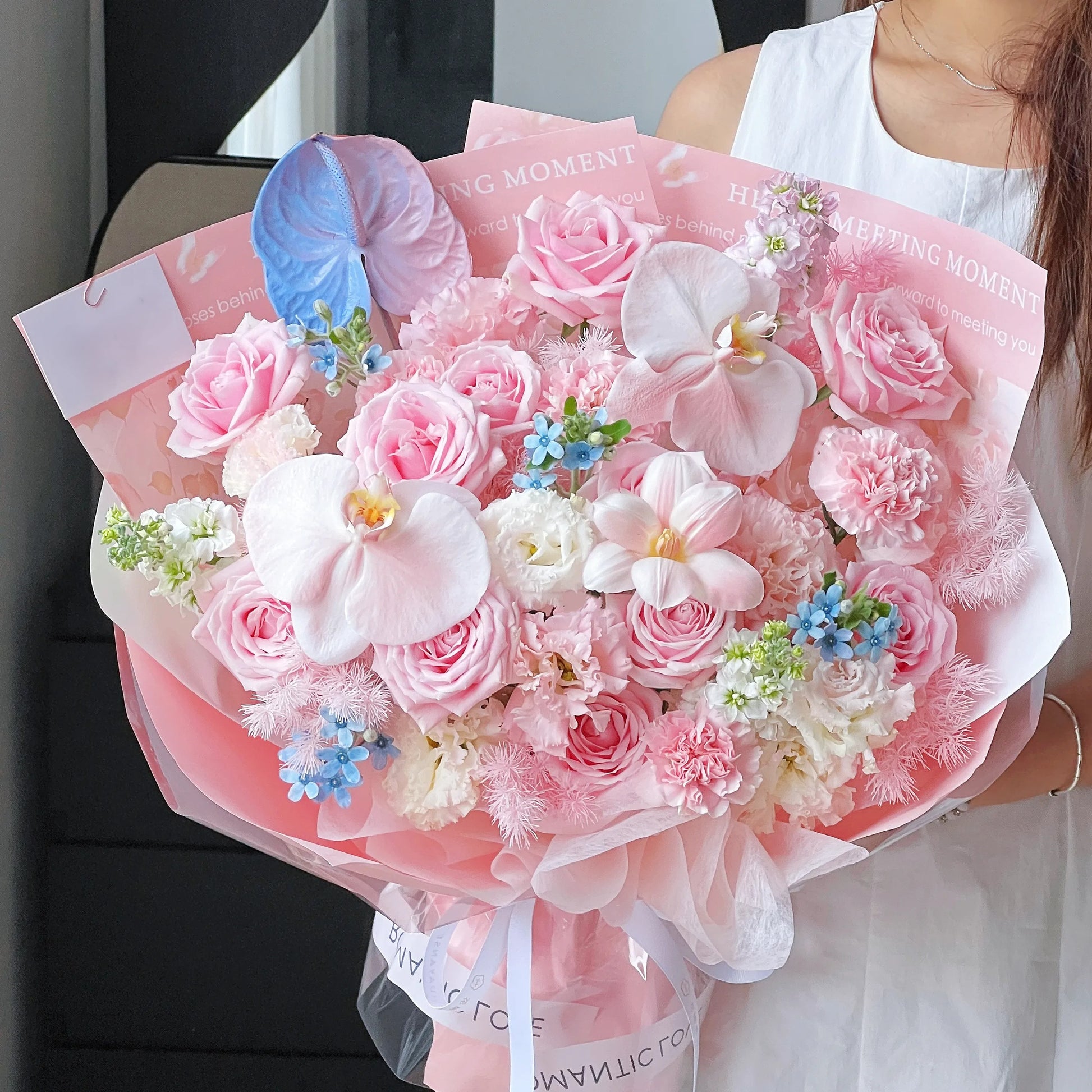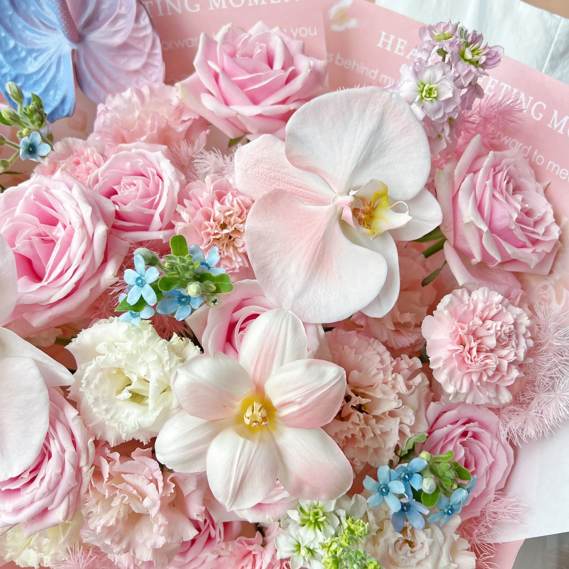 【浪漫花序】粉雪山康乃馨鬱金香混搭鮮花束