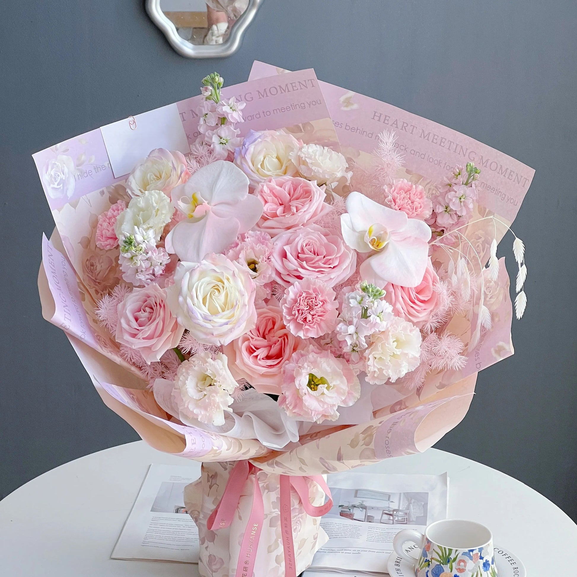 【全城熱戀】粉荔枝白玫瑰康乃馨混搭鮮花束