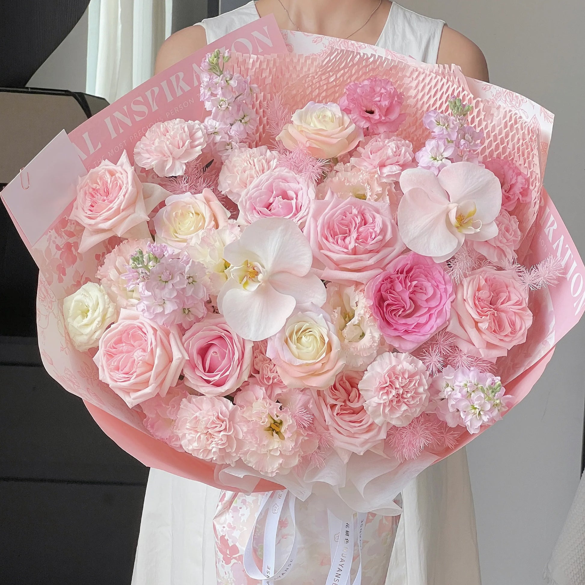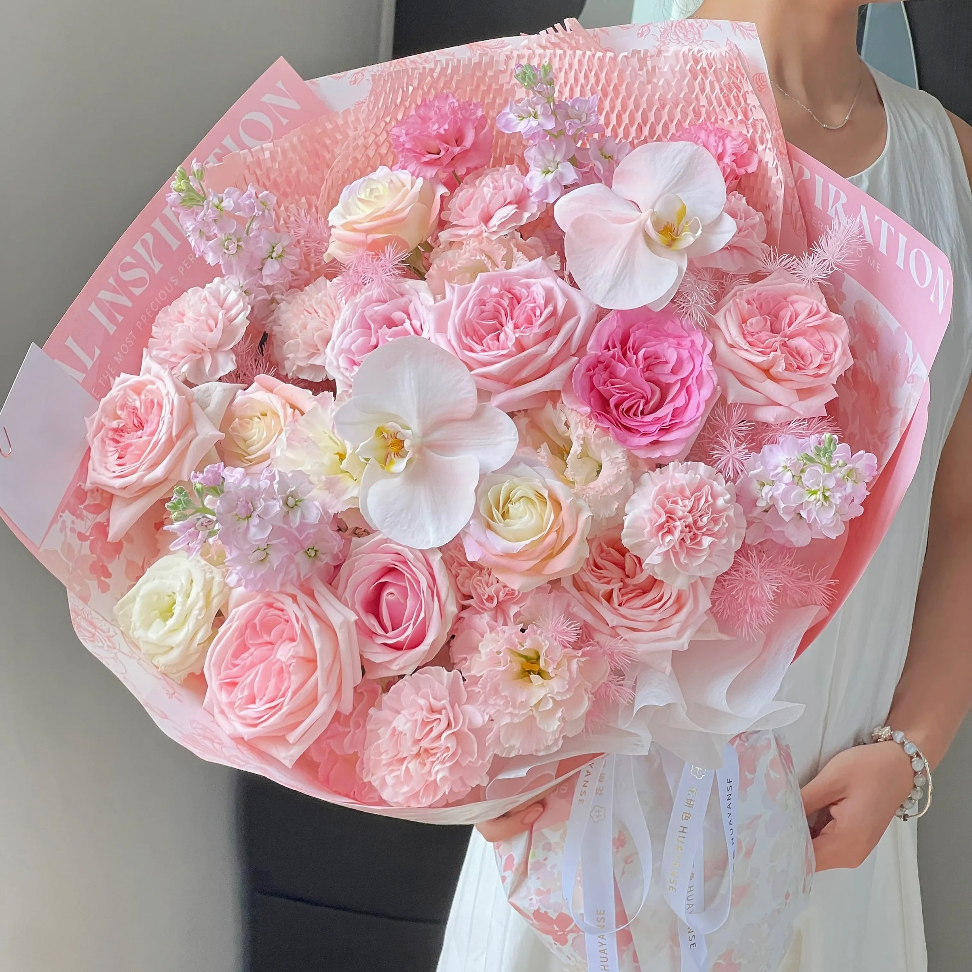 【奶芙甜心】粉荔枝康乃馨蝴蝶蘭混搭鮮花束