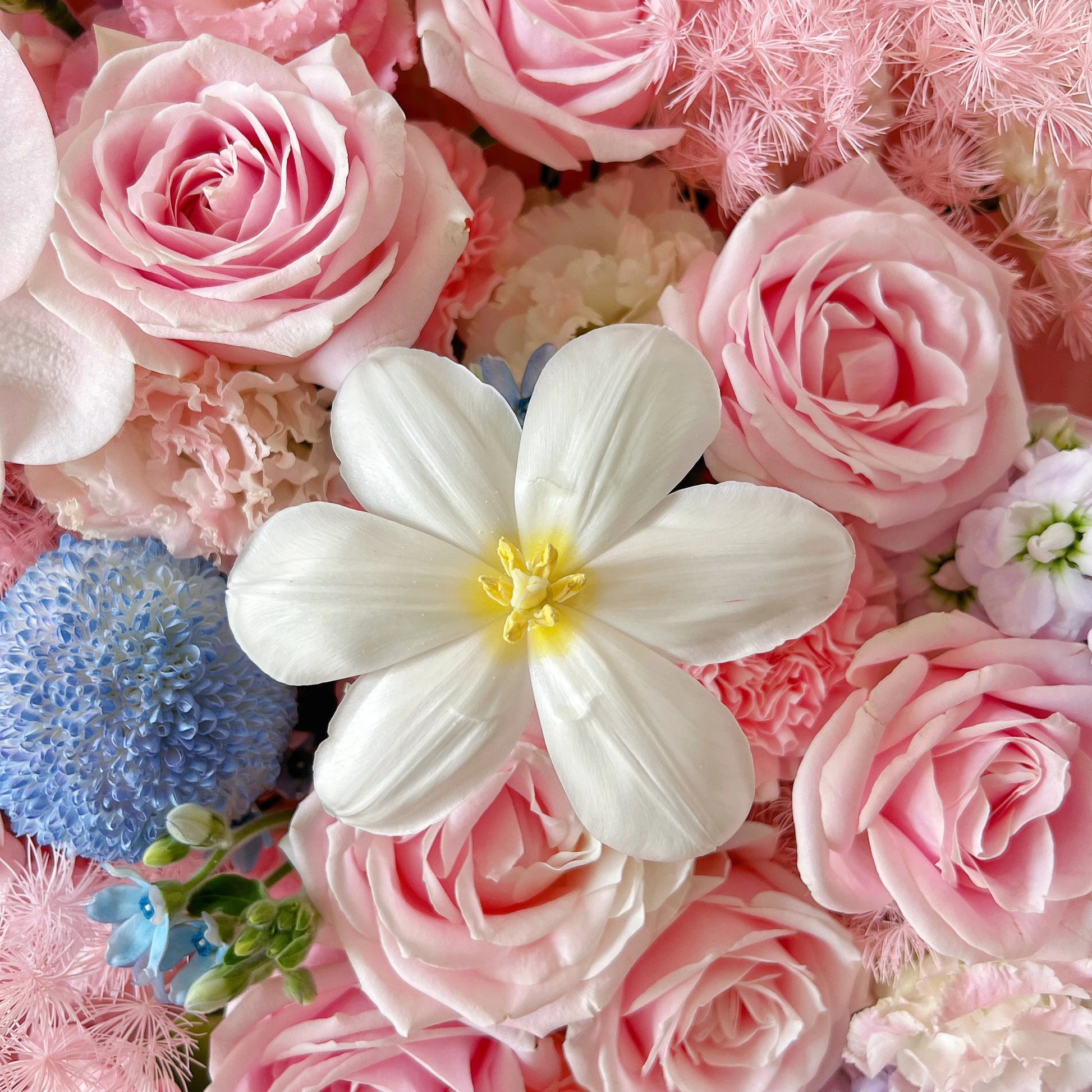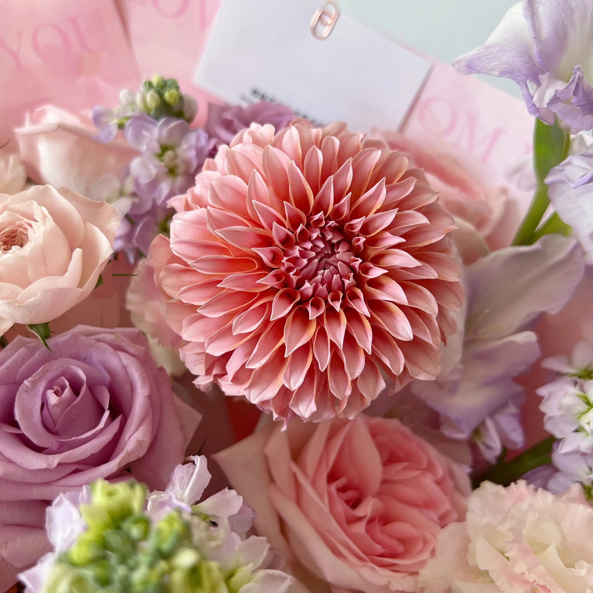 【雲端戀語】奶油桃子粉荔枝紫玫瑰混搭鮮花束