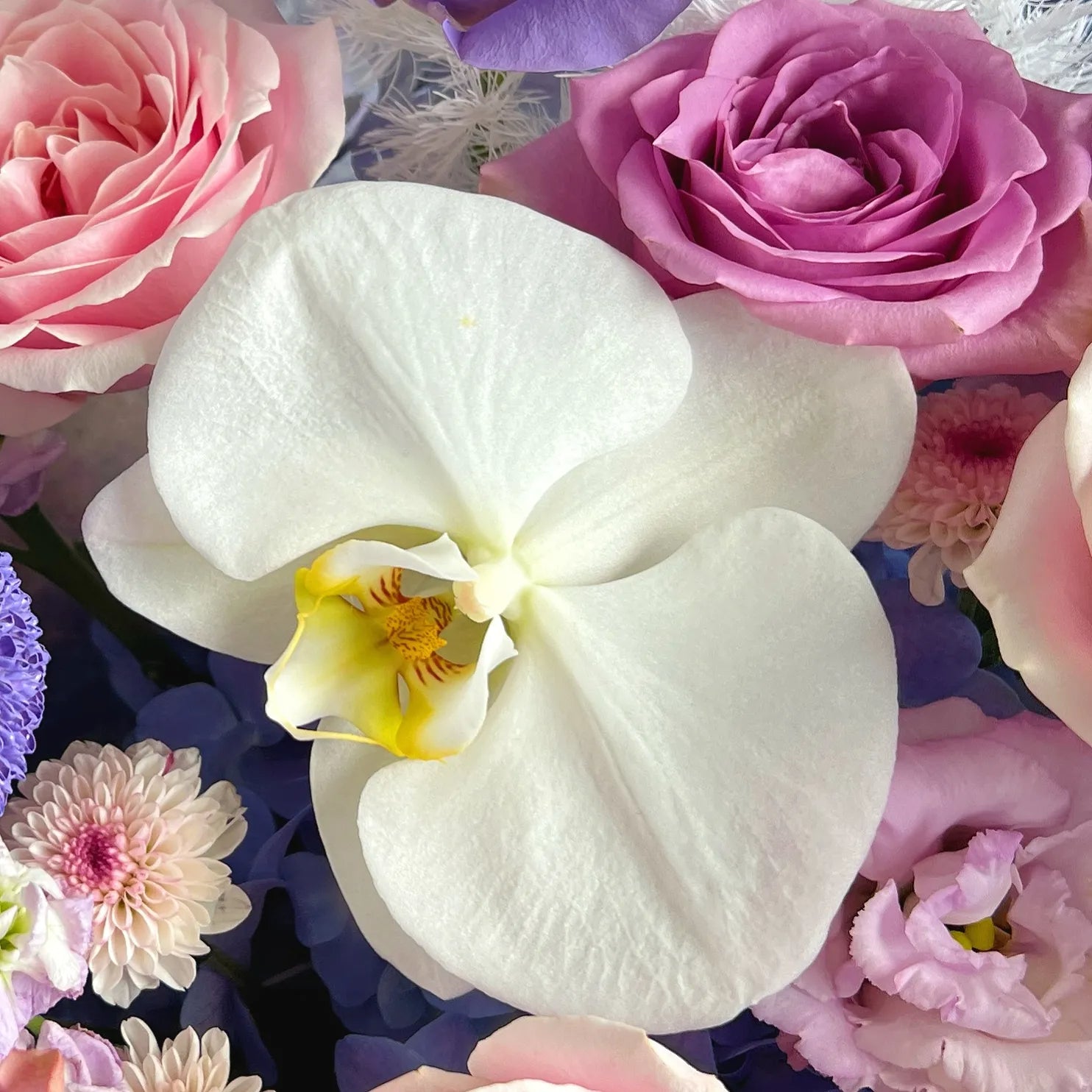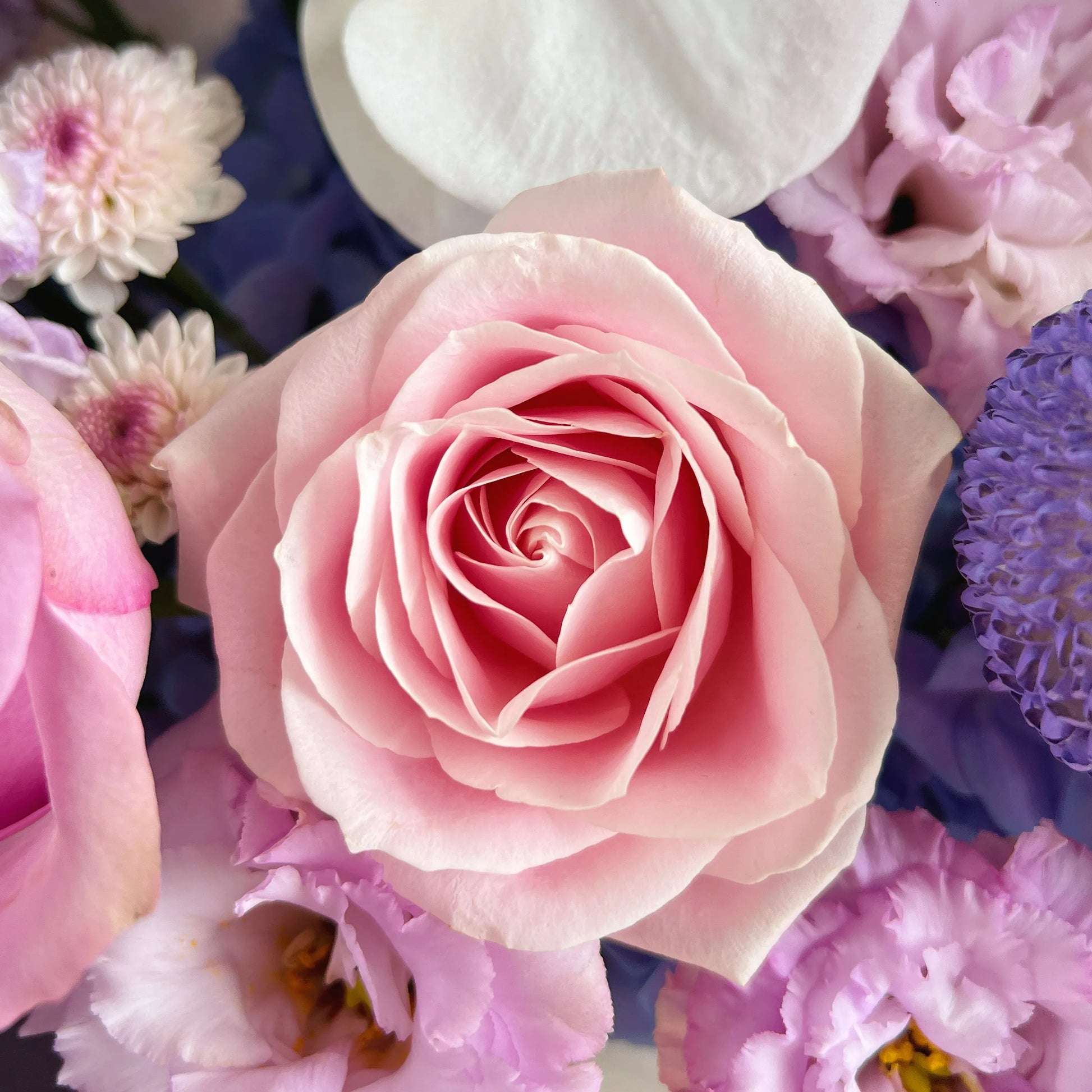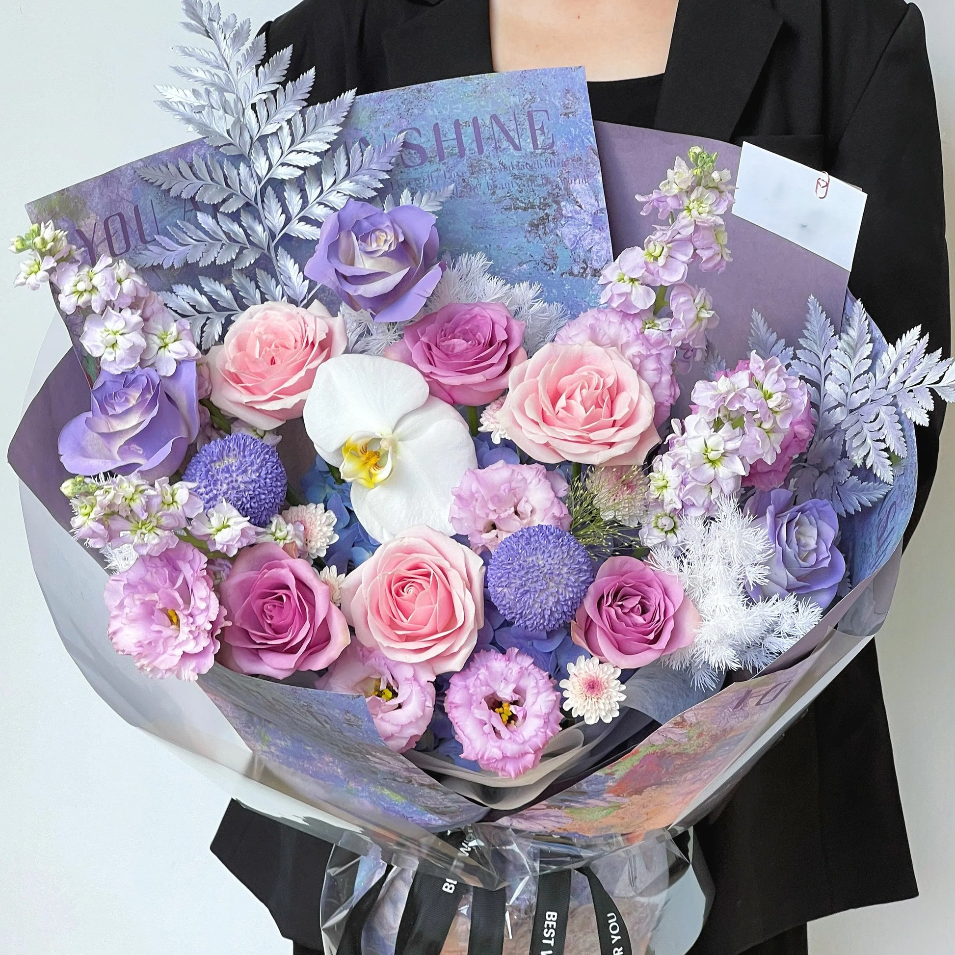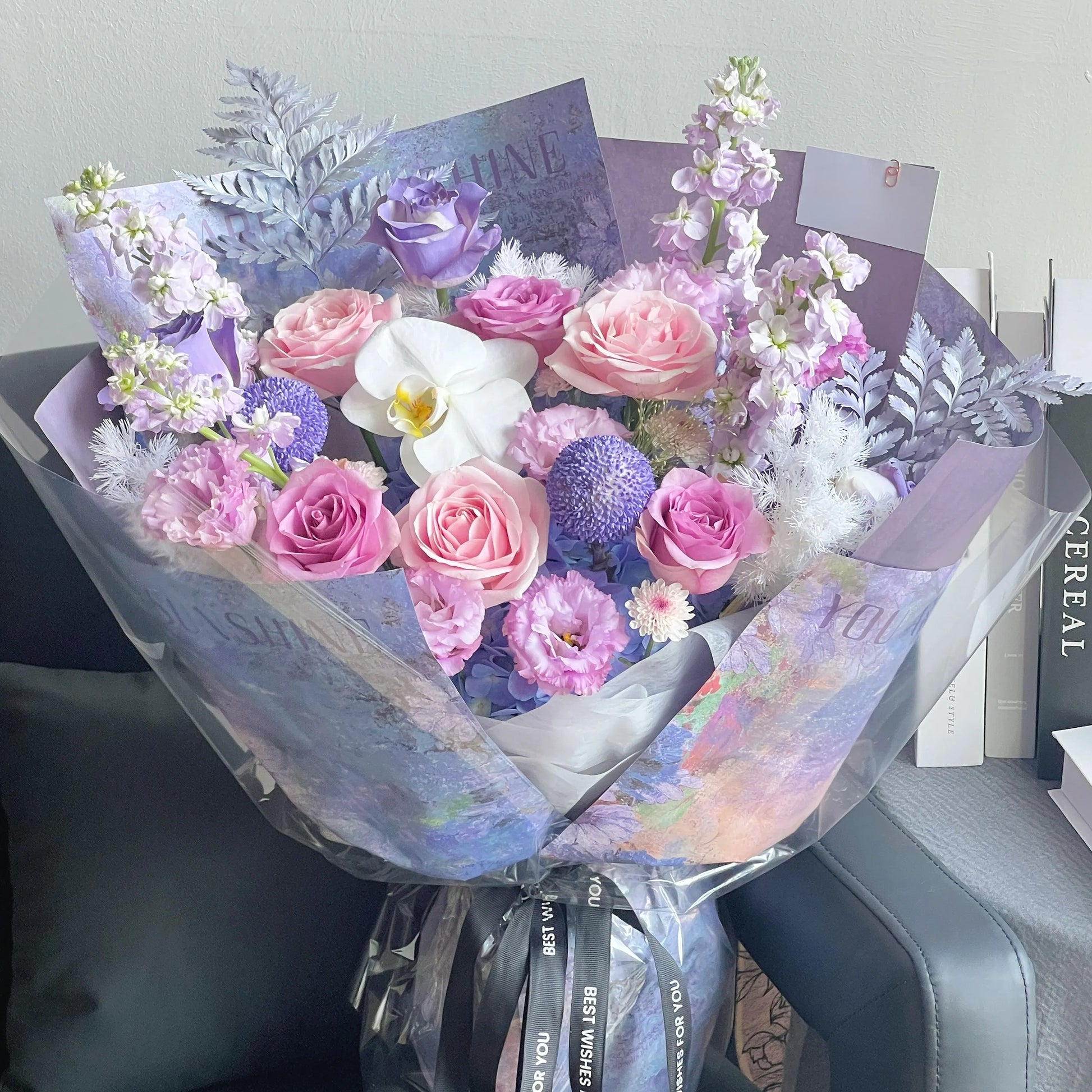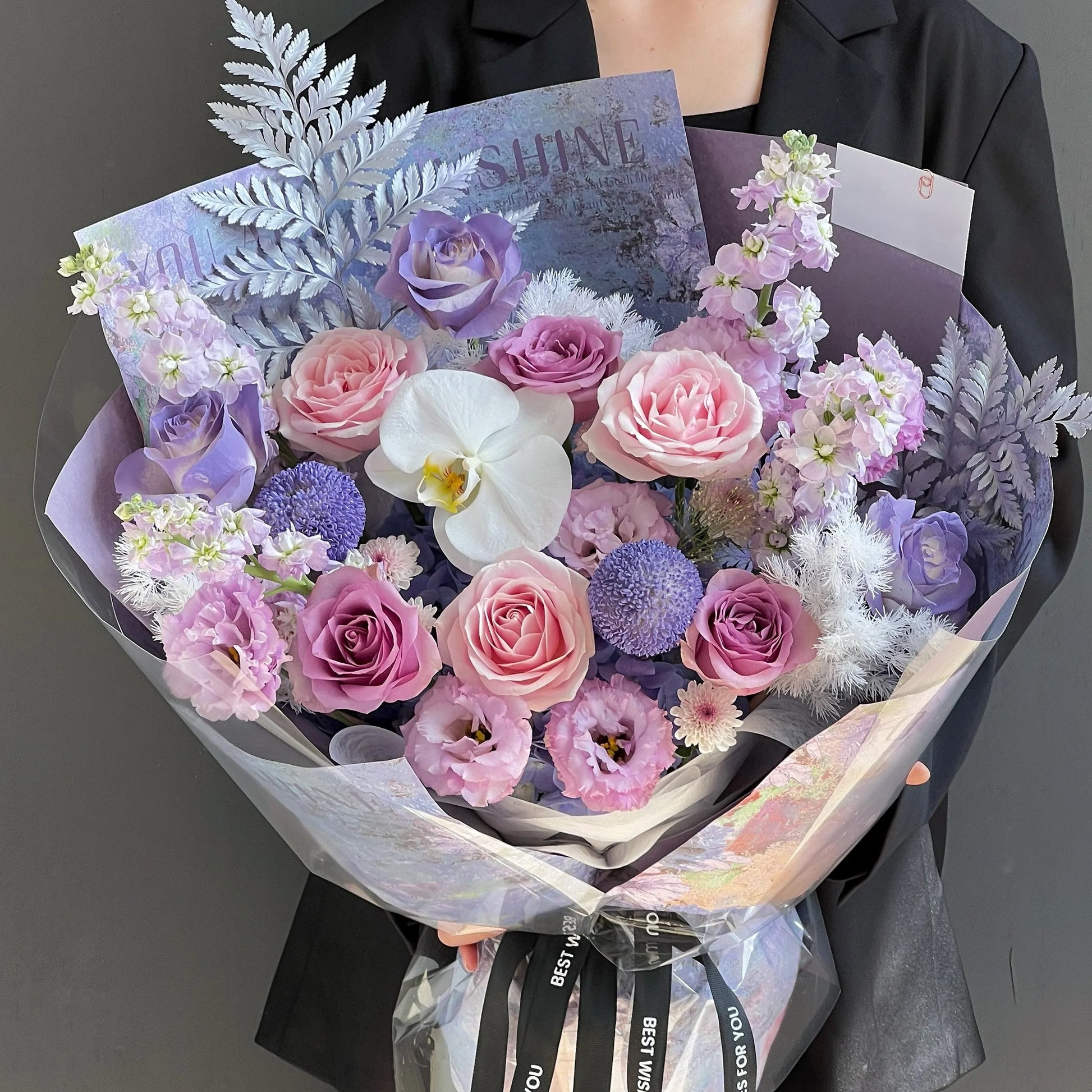 【紫鳶】紫玫瑰粉雪山桔梗混搭鮮花束