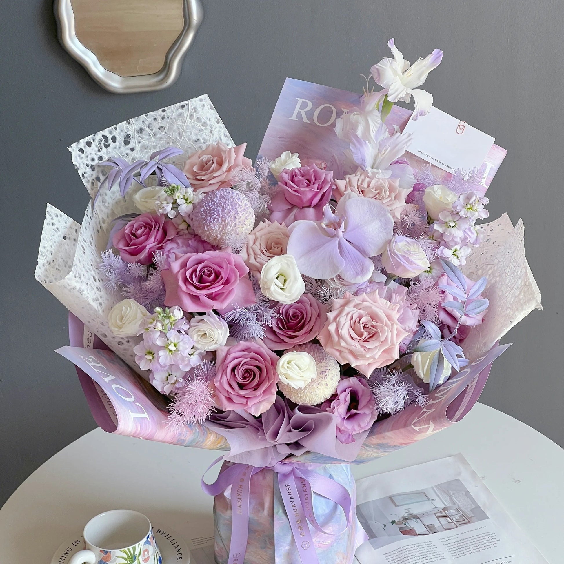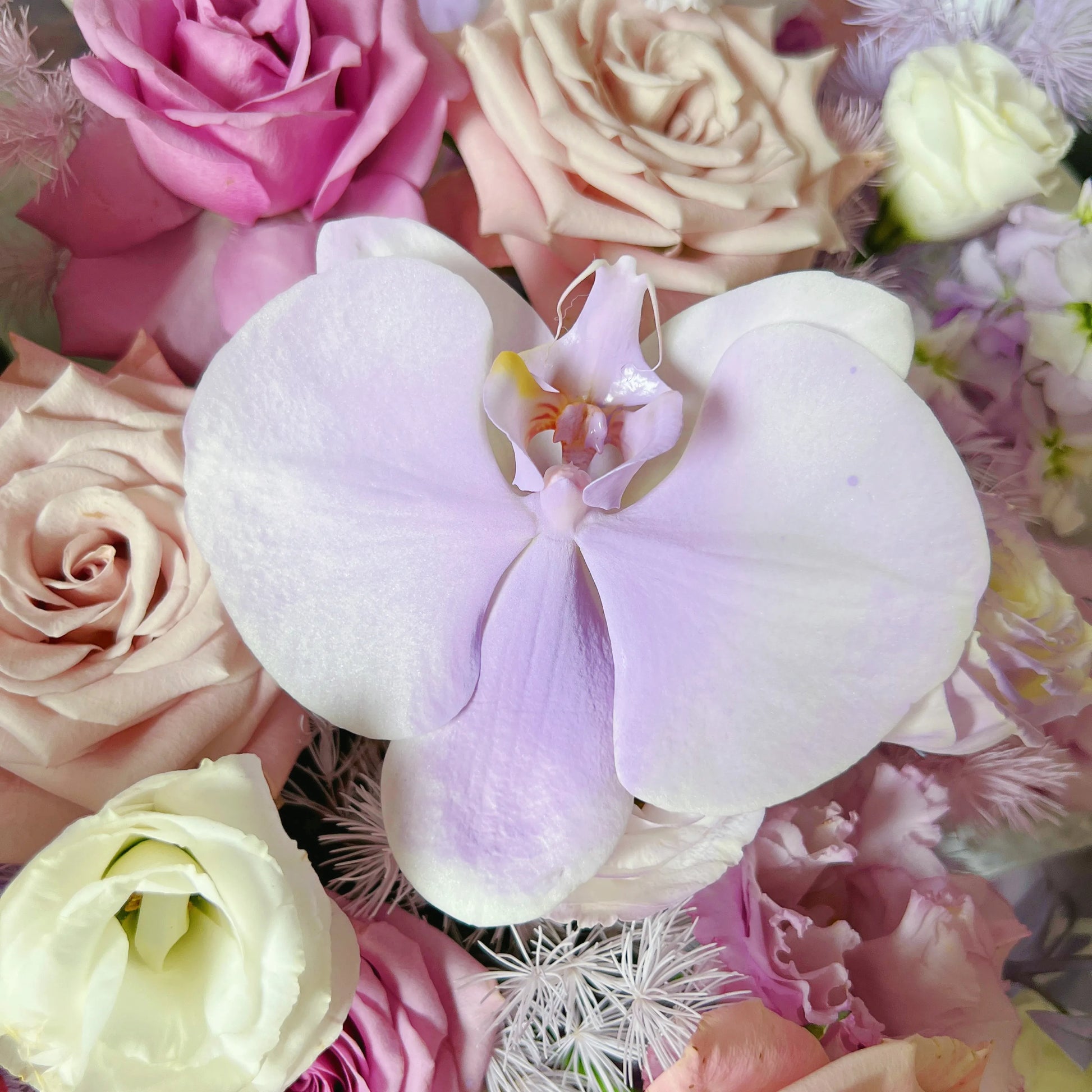 【幸運有你】紫玫瑰曼塔蝴蝶蘭混搭鮮花束