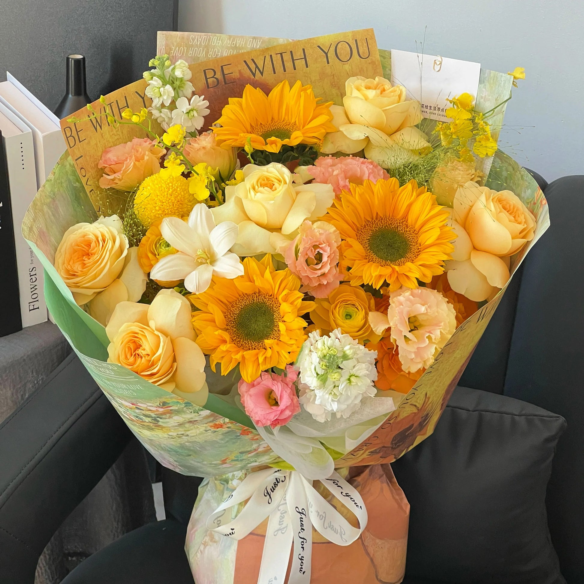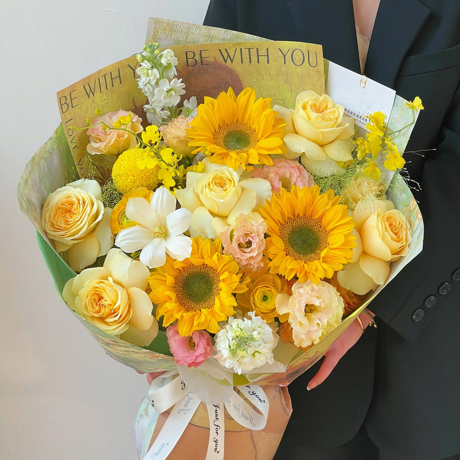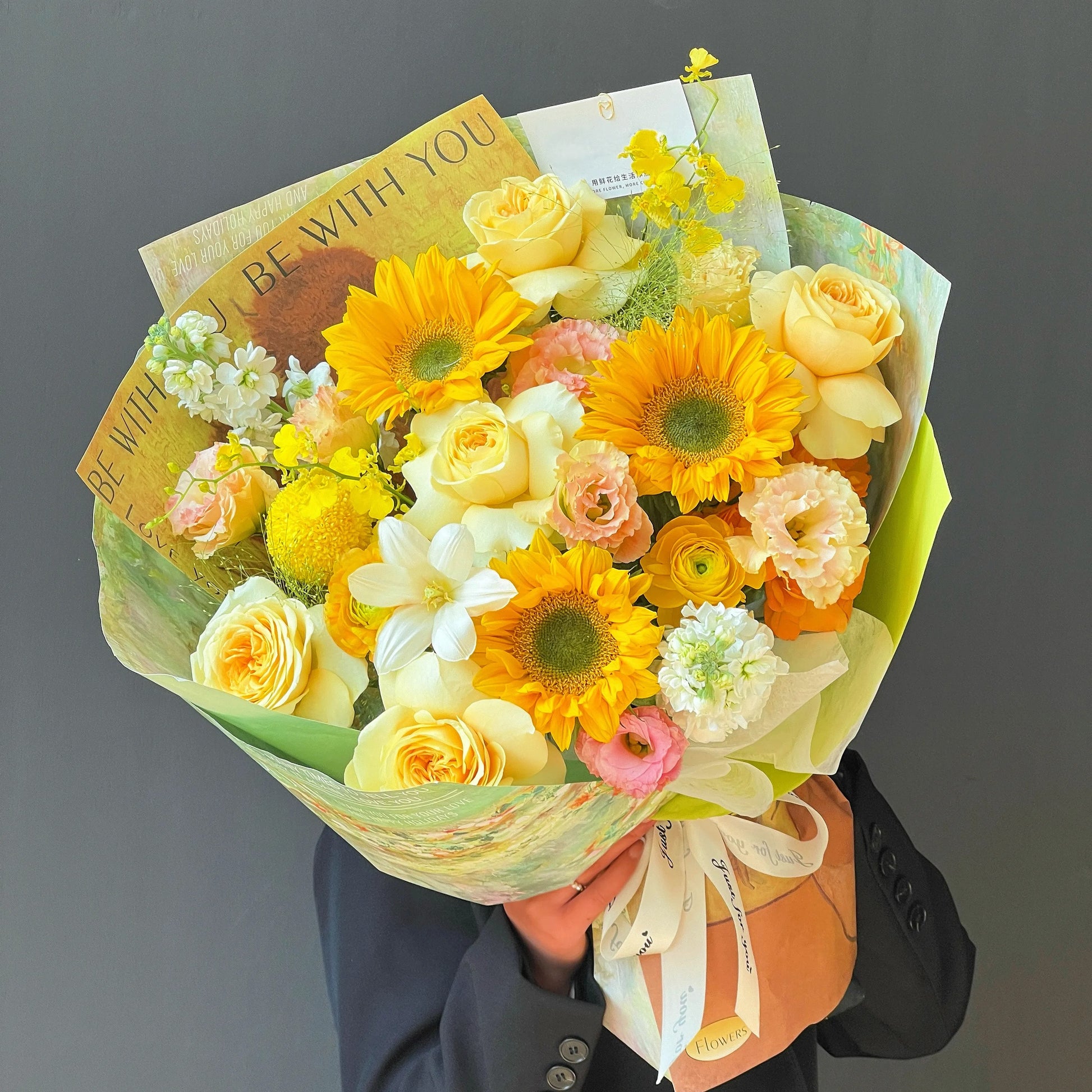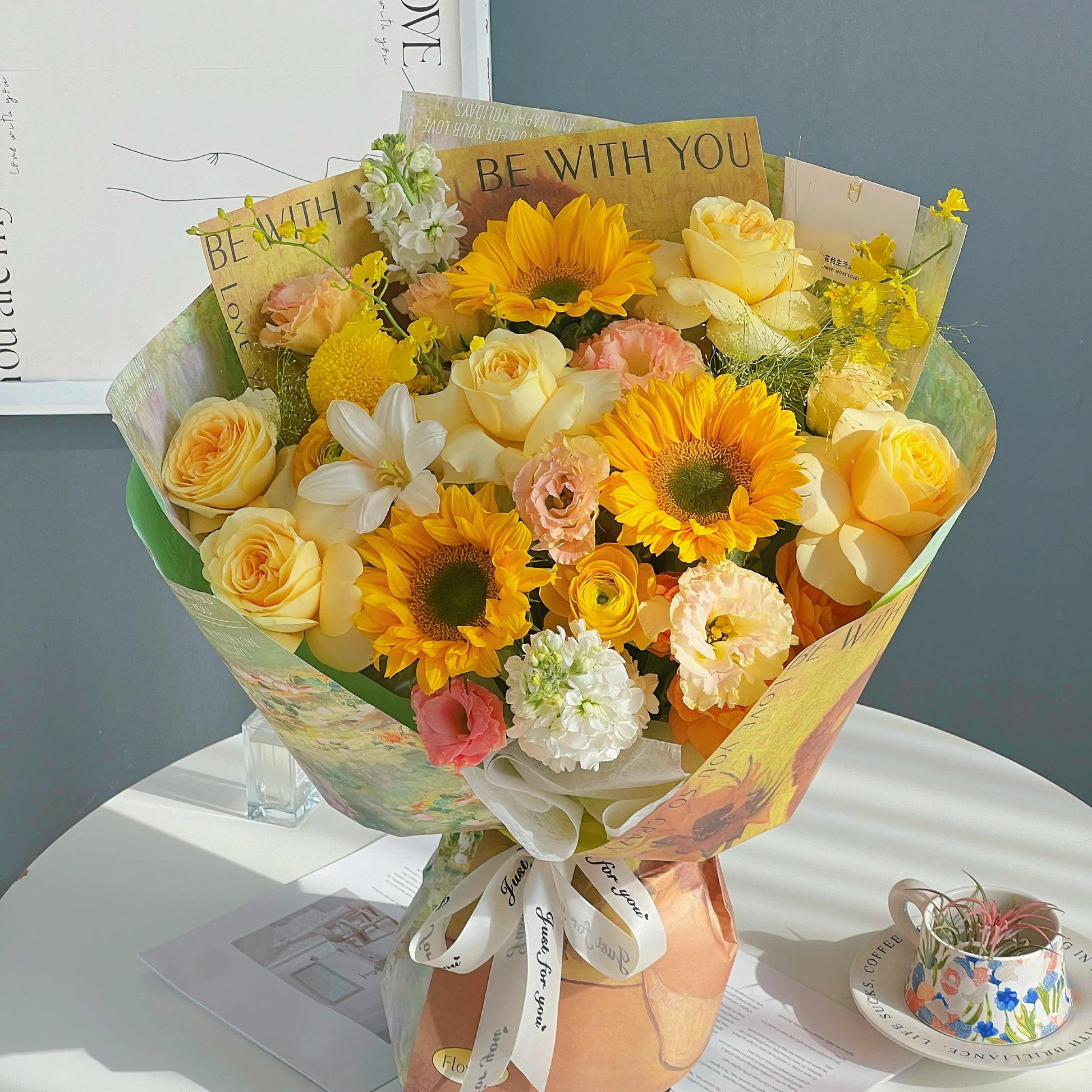 【小春日和】綠心向日葵奶油杯鬱金香混搭鮮花束