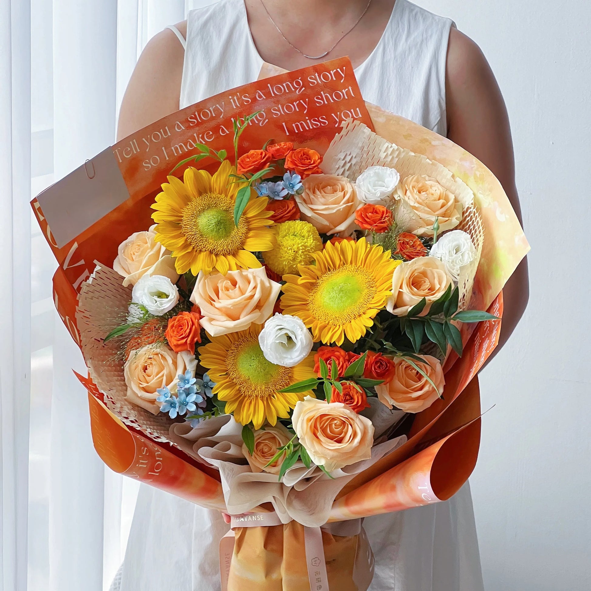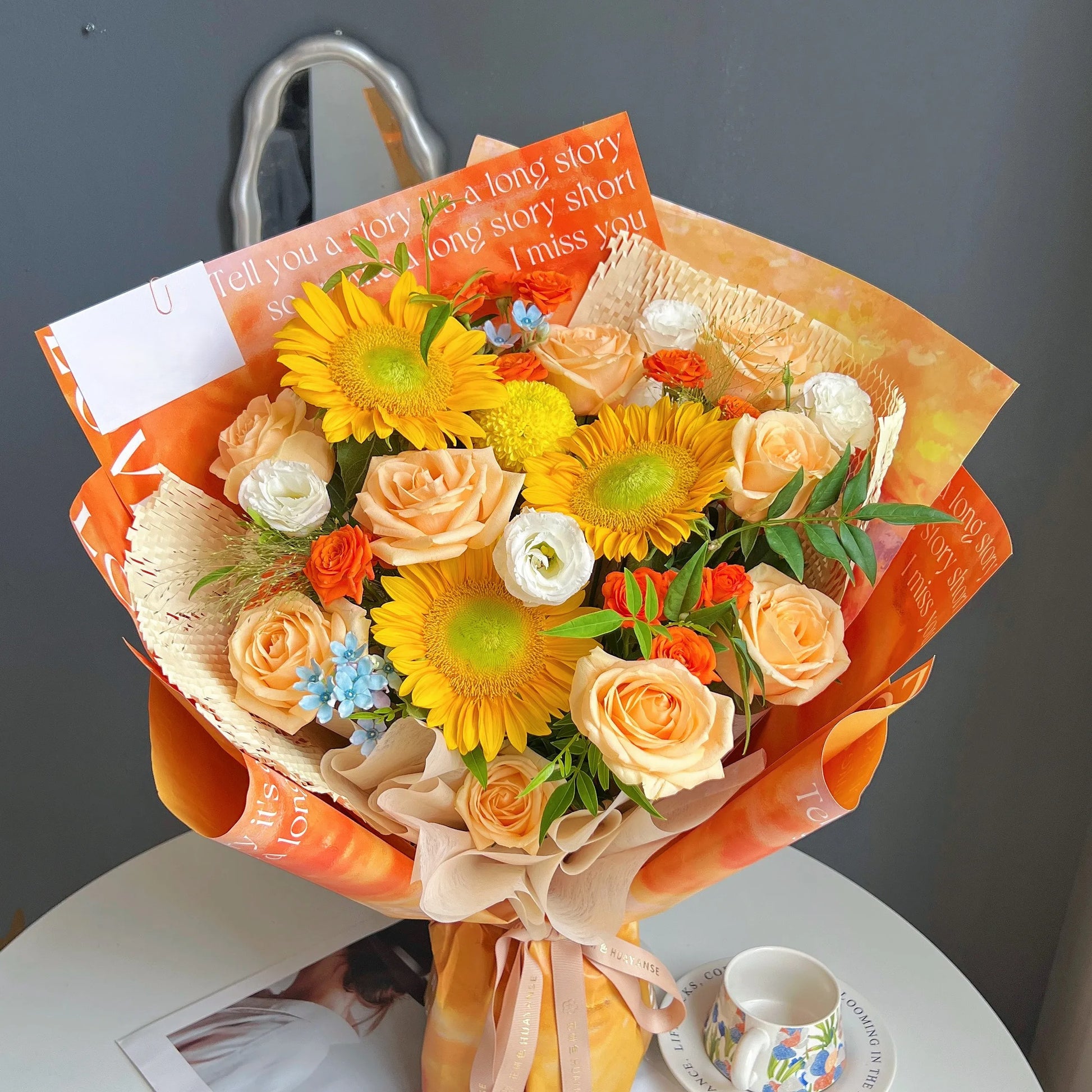 【睛陽拾趣】向日葵香檳玫瑰混搭鮮花束